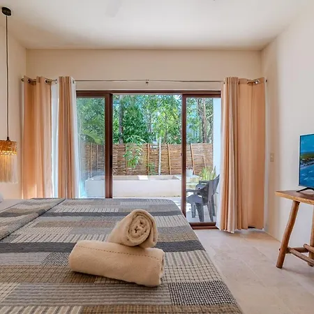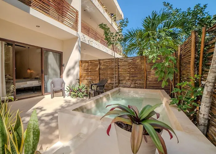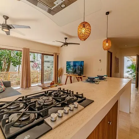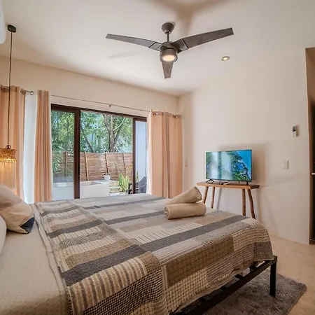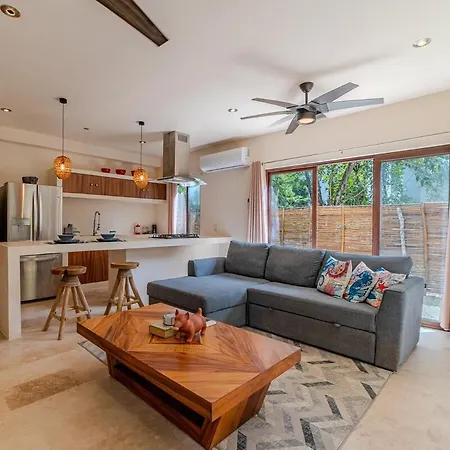 Offering a private swimming pool, the spacious Modern Condo With Pool Fast Wifi Perfect Tulum is situated 7 km from the Tulum Archaeological Site. Guests can relax and take in garden views from a terrace of this apartment.