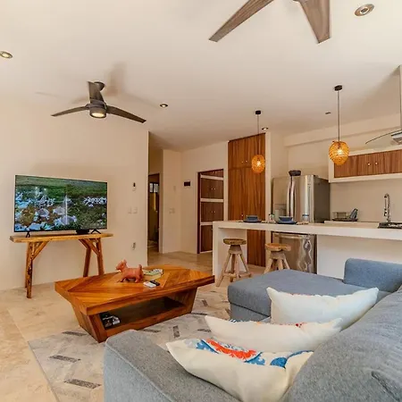 Modern Condo With Pool Fast Wifi Perfect Tulum Pueblo biedt de nabijheid van een aantal toeristische attracties, zoals het Maya Ruïnes van Tulum, gelegen op op circa 7 km afstand. Het appartement heeft een terras en een privézwembad voor de ultieme ontspanning van de gasten.